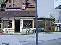 Фаст-фуд Сека, на месте мечети до 1990-х годов (надгробия справа)