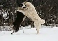 Многие любители среднеазиатских овчарок для оценки рабочих качеств среднеазиатской овчарки проводят бои по четко установленным правилам, исключающим травмы или гибель собак. В современной истории эти мероприятия получили название «Тестовые испытания волкодавов». Тестовые испытания волкодавов — это проверка характера, силы духа представителей породы и физических качеств. Наряду с очевидными плюсами, у этого вида проверки есть и минусы: разводимые по результатам боёв алабаи утрачивают свойственное породе ритуальное поведение, имеют очень высокий уровень внутривидовой агрессии, не способны жить стаей, кроме как в паре кобель-сука.[11]