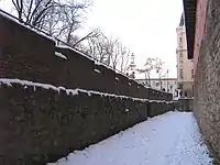 Развитие огнестрельного оружия вынудило горожан построить вторую линию обороны, известную как Низкая стена. На ней в промежутках между башнями Высокой стены размещались 16 открытых полукруглых бастей (в 1970-х годах во время реставрационных работ были найдены подземные части двух бастей восточной линии Низкой стены). Третью линию обороны составляли земляные валы, оборудованные каменно-деревянными укреплениями (от них сохранилась только Пороховая башня). В первой половине XV века земляные валы, окружавшие Высокую стену, были нарощены и укреплены деревянным частоколом, а рвы углублены. С 1476 года архитектор Ян Шиндлер повторно нарастил валы и углубил оборонный ров[96].