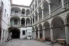 Не меньшим художественным достоинством обладает другое ренессансное здание — соседний дворец Корнякта (дом № 6). После пожара 1571 года купец Мельхиор Хазе продал этот участок Константину Корнякту, который добился королевского разрешения на возведение шестиоконного фасада. В 1580 году постройка дворца по проекту Петра Барбона была завершена (по всей видимости, в работе принимал участие и Павел Римлянин). Цокольный этаж, использовавшийся под торговое помещение, расчленён арочными проёмами смещённого с центральной оси портала и трёх окон. Выразителен задний фасад здания, выходящий на улицу Фёдорова, особенно рустованный портал с высеченной на нём датой постройки. На первом этаже сохранился готический зал со стрельчатым перекрытием. Украшением дворца служит так называемый «итальянский дворик», с трёх сторон обрамлённый открытыми лоджиями[130].