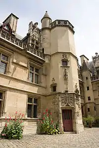 Различные церковные иерархи (епископы, настоятели крупных аббатств или приоры) также обладали в Париже резиденциями, в которых жили во время частых наездов в столицу. Архиепископ Санса владел красивым дворцом Сен-Поль на правом берегу Сены (современная набережная Целестинцев в IV округе). В 1365 году дворец отошёл королю Карлу V, который превратил Сен-Поль в ещё одну королевскую резиденцию, наряду с Лувром (местоположение архиепископского дворца у самой реки позволяло королю быстро и незаметно покинуть город по воде). Особенно Сен-Поль любил Карл VI Безумный. В качестве компенсации Карл V купил для архиепископа дворец Эстомениль на улице Фигье, где тот и устроил свою парижскую резиденцию. В 1475 году старое, обветшавшее здание было снесено, и на его месте построили роскошный дворец Санс, завершённый в 1519 году (также до наших дней дошёл дворец аббатов Клюни, возведённый в XV веке рядом с руинами античных терм)[93][23].
