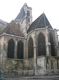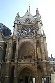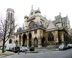 Напротив восточного фасада Лувра расположен готический храм Сен-Жермен-л'Осеруа, основанный в XII веке (с той поры сохранилась лишь высокая романская колокольня). Хоры XIII века относятся к ранней готике, основной массив храма XV века — к пламенеющей готике, а боковой портал — к эпохе Возрождения. Как большинство средневековых построек Парижа, и этот храм был позднее реконструирован, но были сохранены уникальные нервюрные своды, кружевная роза, ценные витражи, многочисленные скульптурные завершения карнизов, водостоков и башенок. Сен-Жермен-л’Осеруа была приходской церковью королевского двора, размещавшегося в соседнем Луврском замке, поэтому в ней похоронены многие художники, скульпторы, архитекторы и учёные, работавшие и жившие при дворе. Колокол на башне этой церкви возвестил о начале резни гугенотов в Варфоломеевскую ночь (24 августа 1572 года)[63].
