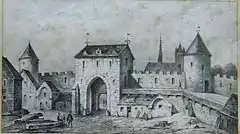 Как и все феодальные города Европы, Париж развивался довольно стихийно. По мере необходимости его окружали крепостными стенами, которые оберегали жителей города и ближайших предместий от набегов мятежных феодалов и иноземных захватчиков. Постройка оборонительного кольца началась в конце XII века и продолжалась более 20 лет. К строительству была привлечена огромная масса горожан и крестьян. В начале XIII века на обоих берегах Сены были возведены два полукольца каменных стен, подходивших к самой воде (их общая протяжённость составляла около 5,3 км). Зубчатые стены достигали в толщину до 3 метров у основания, сверху проходил дозорный путь, а через каждые 70—100 шагов возвышались круглые крепостные башни, которых насчитывалось 67 (они фланкировали шесть городских ворот на правом берегу и пять на левом, сооружённых на пути важнейших дорог, связывавших Париж с другими городами). На правобережье за стеной осталось селение Сен-Мартен-де-Шан, а на левобережье — Сен-Марсель и Сен-Жермен-де-Пре, зато в городскую черту попало аббатство Святой Женевьевы, а также пригородные поля, огороды и виноградники (но вскоре большинство из них исчезло вследствие активной застройки новых земель). В середине XIV века на правом берегу, где особенно быстро росла торгово-ремесленная часть города, полукольцо стен пришлось расширить, включив в состав Парижа ряд предместий (на левом берегу власти ограничились лишь модернизацией старой стены)[49][3][23].