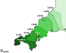 | Год | Территория, занимаемая носителями языка (в км²) | Население Корнуолла | Количество носителей |