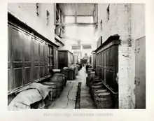 - В последней части были расположены Судовый ряд с Фряжскими погребами, Пушной ряд, Нижний москательный ряд, Юхотный подошевный ряд (юхть - мягкая кожа), Свечной ряд с Уксусными погребами, Восковой ряд, у дальней стены находился Мыльный ряд.