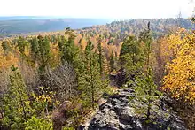![]() Средний Урал. Вид с горной вершины Азов | |