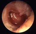 В случае разрыва барабанной перепонки возможно появление кровянистых выделений из уха и ослабление боли.