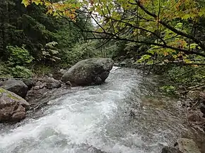 В бассейне реки, на склонах г. Туман, в верхней части, распространены заросли кедрового стланика. В среднем и нижнем течении реки южные склоны заняты смешанными лесами, на северных произрастает тёмно-хвойная тайга.