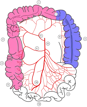 - Верхняя и нижняя брыжеечные артерии, их ветви и зоны кровоснабжения. StudFiles. Дата обращения: 21 июня 2021.