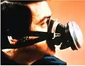 Полнолицевая маска закрывает рот, нос, подбородок и глаза, используется со сменными фильтрами или подключается к источнику чистого воздуха.