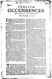 Первая газета в Америке называлась «Публикации как за рубежом, так и внутри страны». Она была основана в Бостоне 25 сентября 1690 года книготорговцем Бенджамином Харрисом. Первый выпуск описывал проблемы коренного населения Америки, что очень не понравилось колониальным властям, поэтому газету закрыли. Следующая носила наименование «Бостонский вестник». Её основал почтмейстер Джон Кемпбелл в 1704 году. Позднее, в 1719 году в Филадельфии выпустили «Американский еженедельный вестник» («The American Weekly Mercury»), в 1721 году в Бостоне — «The New-England Courant», в 1728 году «The Pennsylvania Gazette». Первые журналы появились в 1741 году: «The American Magazine» Эндрю Бредфорда, «The General (magazine)» Бенджамина Франклина[5].
