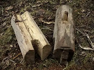 Встречаются способы рубки с прямоугольными и трапециевидными выемками. Они характерны скорее для финно-угорского населения, нежели для русского. Рубкой в охряпку называется способ соединения брёвен прямоугольными или трапециевидными выемками с двух сторон бревна. Русские считали её «скорым, но дурным способом». Применялась она в хозяйственных постройках. В рубке в шведский угол используется одна трапециевидная выемка. В случае стёски бревен на всю длину остатков они принимают форму шестигранников[11].