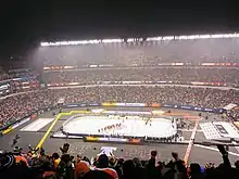«Линкольн-файненшел-филд» является домашним стадионом для футбольной команды «Филадельфия Иглз», выступающей в НФЛ. Вместимость стадиона составляет 69 176 зрителей. 11 февраля 2019 года на стадионе стартовали работы по установке хоккейной площадки[2]. Всего на матче присутствовало 69 620 зрителей[3].