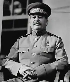 ![]() Иосиф Сталин на Тегеранской конференции в 1943 году | |