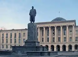 Ио́сиф Виссарио́нович Ста́лин (настоящая фамилия — Джугашви́ли, груз. იოსებ ჯუღაშვილი; 6 [18] декабря 1878 (по официальной версии — 9 [21] декабря 1879), Гори, Тифлисская губерния, Российская империя — 5 марта 1953, Ближняя дача, Волынское, Кунцевский район, Московская область, РСФСР, СССР) — российский революционер, советский политический, государственный, военный и партийный деятель. С 3 апреля 1922 по 10 февраля 1934 года — генеральный секретарь, затем — секретарь ЦК ВКП(б) (с 1952 г. — КПСС), с 19 декабря 1930 года, после занятия должности Вячеславым Молотовым председателя Совета народных комиссаров СССР вместо Алексея Рыкова, фактический руководитель СССР[2][3]. Маршал Советского Союза[4], Генералиссимус Советского Союза[5]. Народный комиссар обороны СССР (с 19 июля 1941), Председатель Совнаркома СССР и Председатель Государственного комитета обороны СССР.