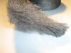 Стальная вата или железная вата представляет собой пучок беспорядочно уложенных стальных проволок очень малого сечения. Используется в качестве абразива для полировки деревянных или металлических предметов, очистки бытовой посуды, чистки окон и шлифовки поверхностей[1].