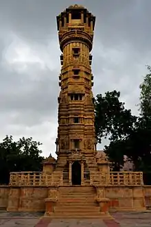 В индийской архитектуре стамбха — это колонна, капитель которой украшают разные скульптурные изображения. Индийский трактат по архитектуре «Манасара» содержит описание различных стамбх, имевших и различное предназначение. Основные типы были таковы: Брахма-канта — это четырёхугольная колонна, Вишну-канта — восьмиугольная, Рудра-канта — имеющая 16 сторон либо круглая, Шива-канта — пятиугольная и Сканда-канта — шестиугольная[5]. Необходимо отметить, что сперва эти пять названий касались количества сторон самих колонн, но позднее их стали применять, основываясь на сторонах капители[6]. Сверху донизу эти колонны должны быть единообразны.