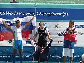 ![]() Станоевич (справа) на подиуме чемпионата мира 2015 года | |