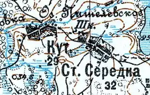 Согласно топографической карте 1926 года деревня Старая Серёдка насчитывала 32 крестьянских двора, смежная деревня Кут — 29, население деревни Кут составляло 159 человек[9].