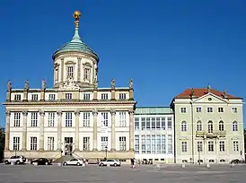 ![]() Старая ратуша Потсдама, соединённая переходом с домом Кнобельсдорфа | |