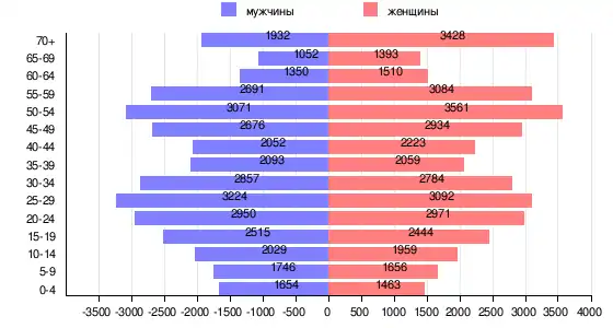 | Население | 70 453 | 100 | 36 561 | 51,9 | 33 892 | 48,1 |