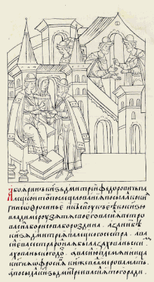 …пожаловал князь великий Иван Васильевич всея Русии, по печалованию отца своего Иоасафа митрополита и боляр своих, князя Владимира Андреевича и матерь его княгиню Ефросинию, княже Андреевскую жену Ивановича, из нятства выпустил, и велел быти князю Владимиру на отца его дворе на княже Андреевском Ивановича и с материю.[4]