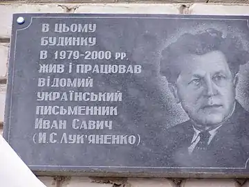 В этом доме жил и работал с 1979 по 2000 год известный украинский писатель И. С. Лукьяненко