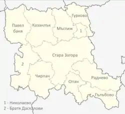Крупные города — Стара-Загора (136 тыс.); Казанлык (52 тыс.)