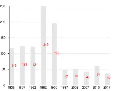 Согласно подворной переписи 1882 года в деревне проживали 44 семьи, число жителей: 129 м. п., 120 ж. п.; разряд крестьян — собственники земли[6].