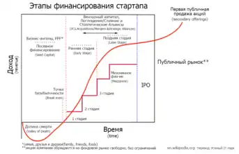Большинство подходов к описанию этапов финансирования, с некоторыми вариациями, аналогичны представленному в эссе Пола Грэма «Как профинансировать стартап»[17]: