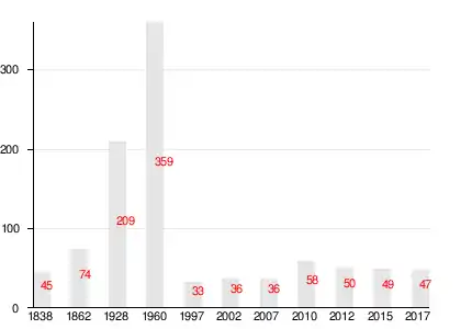 | 1838 | 1862[22] | 1997 | 2007[23] | 2010[24] | 2012[25] | 2015[26] |