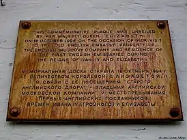 Музей «Старый Английский двор» — на улице Варварка в здании, входящем в ландшафтно-архитектурный комплекс парка «Зарядье» (ранее — филиал Музея Москвы), посвящённый английскому быту и истории русско-английских отношений[1].