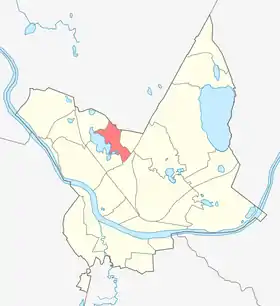 Район с запада ограничен озером Шуня, с юго-востока — Петербургско-Варшавской железной дорогой, с севера ограничен Новым Форштадтом. С северо-запада граничит со Средней Погулянкой. К нему примыкает посёлок железнодорожников.