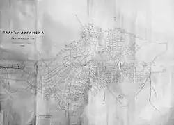 Наглядное представление об историческом центре Луганска даёт «План села Луганского» 1879 года. Карта достаточно ясно характеризует планировочную структуру города, которая сложилась в XIX веке.