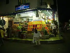 Два входа в базар устроены в виде крупных ворот в древнеегипетском стиле с рисунками на соответствующие темы. Над базаром, с направления от района Хадаба, возвышается популярная среди туристов, имеющая водопады, горные тропы и вечернюю подсветку, каменная скала.