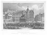 - Colorierte Ansicht vom Düsseldorfer Marktplatz (bei Zeno.org)