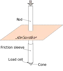 Зонд представляет собой металлическую штангу с наконечником в виде конуса диаметром 33—77 мм. Вдавливающее усилие передаётся на наконечник через штангу, наращиваемую по мере погружения в грунт[2]. В России вопросы нормирования требований к терминам, оборудованию и приборам, подготовке, проведению и обработке результатов испытаний методом статического зондирования регламентируются стандартом ГОСТ 19912-2012, который в зависимости от конструкции наконечника разделяет зонды на два типа: