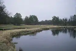 Ширина реки в нижнем течении — 20—30 м, поймы — до 80—200 м в среднем течении, в нижнем достигает 600—1200 м. На реке есть несколько песчаных островов. Берега покрыты смешанными лесами с преобладанием лиственных, местность заболочена с песчаными и торфяными почвами.[2]