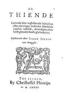 Симон Стевин стал известен прежде всего своей книгой «Десятая» (De Thiende), изданной на фламандском и французском языках в 1585 году. Именно после неё в Европе началось широкое использование десятичных дробей. Десятичные индо-арабские цифры укоренились в Европе намного раньше, с XIII века, а вот дроби использовались либо натуральные, либо шестидесятеричные, либо масштабированные до целых чисел. Например, когда Региомонтан составил первую чисто десятичную таблицу тангенсов (1467), она содержала целые числа, соответствующие радиусу круга 100000 единиц. Правда, Иммануил Бонфис, Виет и некоторые другие математики уже начали использовать десятичные дроби, но правилом это ещё не стало.