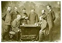 Вильге́льм Сте́йниц (нем. Wilhelm Steinitz, англ. William Steinitz, 14 мая 1836, Прага — 12 августа 1900, Нью-Йорк) — австрийский и американский шахматист, первый официальный чемпион мира по шахматам (1886—1894). На рубеже 1860—1870-х годов, уже получив признание как сильнейший игрок своего времени после победы в матче против Адольфа Андерсена, Стейниц разработал учение о позиционной игре, которое пришло на смену доминировавшей «романтической» комбинационной школе и значительно обогатило шахматы.