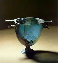 - Чаша найдена в Кёльне, в римском погребении. Подарена от имени города королю Людвигу I. В верхней части по кругу: Bibe multi annis! (с лат. — «Пей ещё много лет!»)