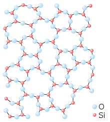 В отличие от кристаллических твёрдых тел (все атомы упакованы в кристаллическую решётку), в стеклообразном состоянии такой дальний порядок расположения атомов отсутствует. Стекло нельзя назвать и сверхвязкой жидкостью, обладающей лишь ближним порядком — взаимным упорядочением только соседних молекул и атомов. Для стёкол характерно наличие так называемого среднего порядка расположения атомов — на расстояниях, лишь немногим превышающих межатомные[26].