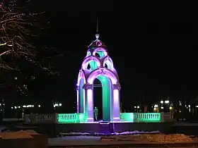 - В Кременчуге есть копия харьковской беседки со шпилем в сквере.