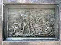 По четырём сторонам нижнего основания колонны установлены четыре рельеф-панно со скульптурными барельефами. Барельефы по тематике разделены на два исторических периода, которые отражают героические события крепости и города Анапы во времена Русско-турецких войн и Великой Отечественной войны. Для рельеф-панно выбраны следующие исторические события: подвиг майора Витязя 18 августа 1809 года, взятие крепости Анапа русскими войсками 12 июня 1828 года, зимнее-весенние десанты 1943 года в пригородах Анапы и освобождение Анапы от фашистских захватчиков 21 сентября 1943 года.