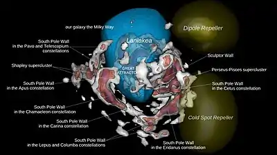 - Daniel Pomarède, R. Brent Tully, Romain Graziani, Hélène M. Courtois, Yehuda Hoffman, and Jérémy Lezmy; (Опубликовано 10 июля 2020 года). "Cosmicflows-3: The South Pole Wall". The Astrophysical Journal. 897 (2). doi:10.3847/1538-4357/ab9952.
