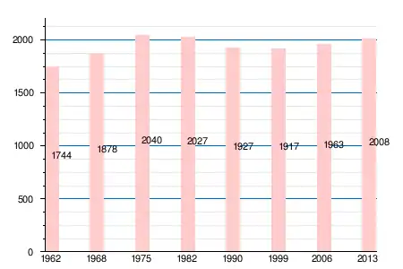 Население коммуны в 2011 году составляло 1986 человек[6], в 2012 году — 1997 человек[7], а в 2013-м — 2008 человек[5].