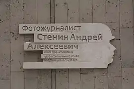 - 22 декабря 2014 года в память о погибшем на Украине фотокорреспонденте Андрее Стенине на Зубовском бульваре в Москве, на здании информационного агентства «Россия сегодня», где он работал, была открыта мемориальная доска[26].