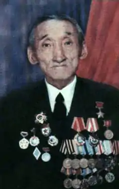 - орден Красного Знамени (28.04.1944; первоначально был представлен к званию Героя Советского Союза)[2];