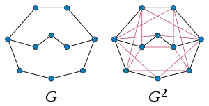 Степень k графа с n вершинами и m рёбрами можно получить за время O(mn) путём применения поиска в ширину, который осуществляется для каждой вершины графа с целью нахождения расстояний до всех других вершин. Альтернативно, если A — матрица смежности графа, модифицированная таким образом, что на главной диагонали не стоят нулевые элементы, то ненулевые элементы матрицы Ak дают матрицу смежности k-ой степени графа[13], откуда следует, что построение k-ой степени графа может быть осуществлено за время, равное, с точностью до логарифмического множителя, времени умножения матриц.