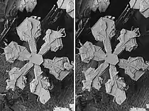 - Метод параллельного взгляда позволяет посмотреть полноцветную стереокартинку безо всякого оборудования, стереоэффект достигается за счет сведения глаз дальше плоскости изображения. Используются два снимка, сделанные с разных ракурсов. Способ пригоден только для просмотра небольших изображений (шириной до 60—70 мм каждое), что обусловлено межзрачковым расстоянием человека.